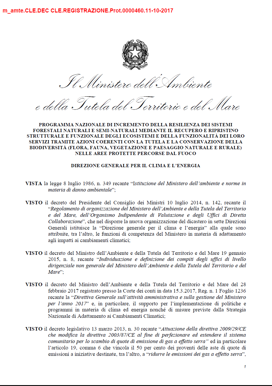 Finanziato con i soldi della lotta ai cambiamenti climatici ma destinato agli interventi di forestazione di aree percorse dal fuoco nelle aree naturali protette. La Direzione Generale competente è quella per il clima e l’energia ma chi poi dovrà autorizzare l’eventuale forestazione in deroga al divieto previsto dalla Legge n. 353/2000 è quella competente per la protezione della natura.